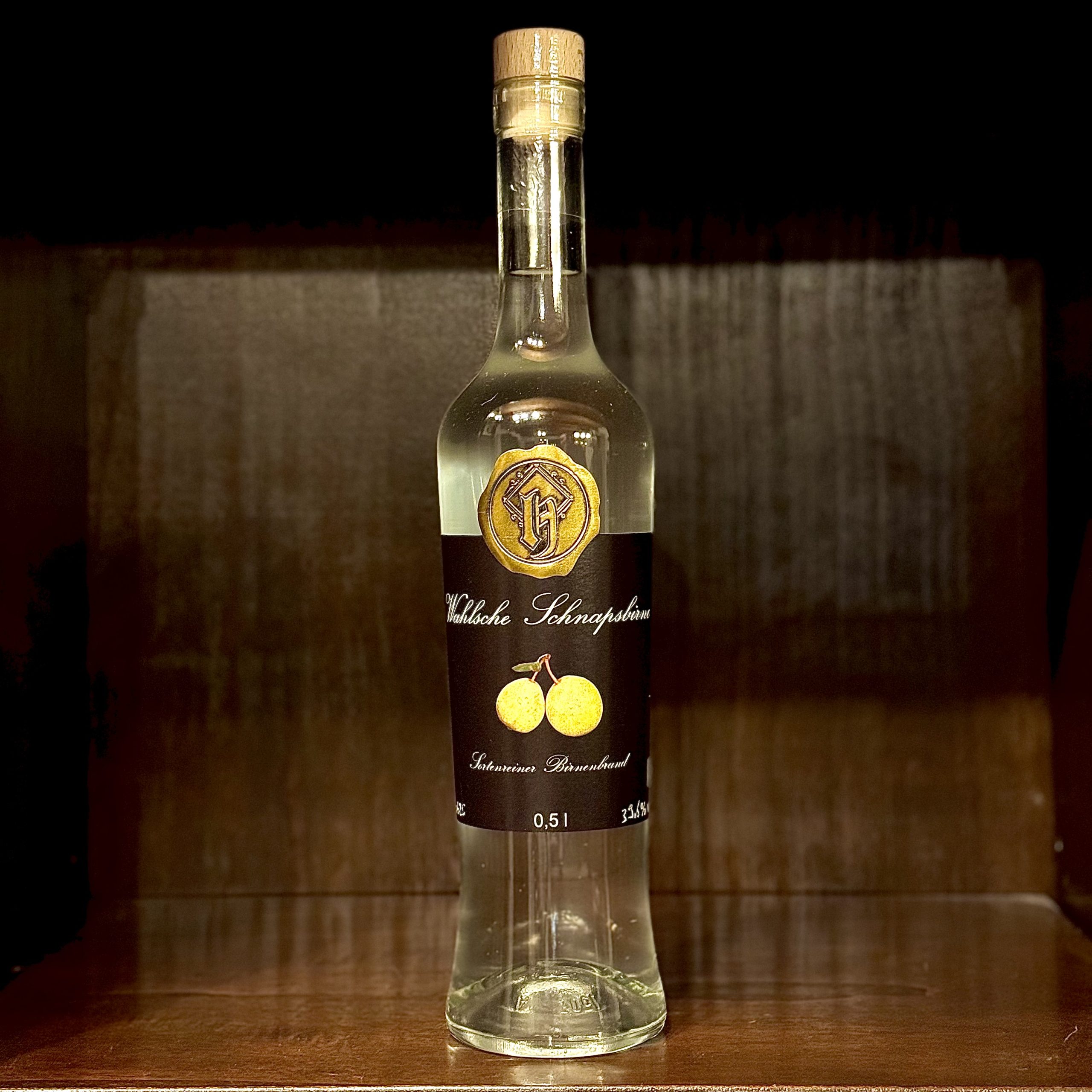 Die Wahlsche Schnapsbirne ist eine vergleichsweise junge Sorte, die in den 1970ern von Herrn Wahl als Zufallssämling entdeckt wurde. Wie der eher umgangssprachliche und (in der heutigen Zeit) fast schon negativ konnotierte Name zeigt, eignet sich diese kleine gelbe, mit Sommersprossen übersähte Birne fast ausschließlich zum destillieren. Als Destillat aber beweist sie, dass die alte Königin der Birnen, die Williams Christ, sich als Brand nunmehr nur noch mit dem zweiten Platz zufrieden geben muss. Die Königin ist tot, es lebe die Königin.